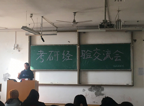 整个交流会在轻松的氛围下进行着,阎老师幽默风趣的语言,既讲明了考研的重点,又提高了同学们考研的兴趣。阎老师的演讲赢得了同学们的阵阵掌声。最后,阎老师在总结发言中对同学们提出殷切希望,鼓励同学们确定自己的目标和方向,并为之努力拼搏,最终取得理想的结果。