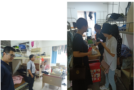 8月31号上午,我院党总支书记刘剑坤,学生管理科科长高振江,辅导员周俊屹老师,樊梦云老师,阎静老师,裴蕾老师前往三号及五号公寓对宿舍卫生及宿舍安全进行检查。