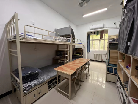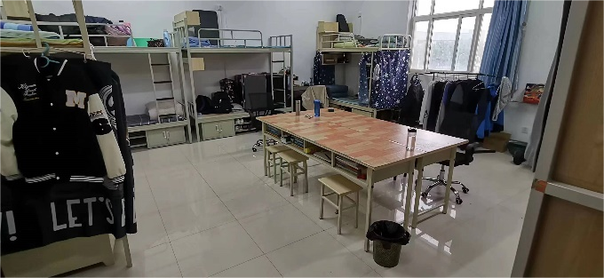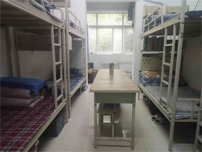 2.床铺:被子叠放整齐,床单褥子铺展;衣物存柜或挂起,床上无杂物;床头书架干净,书及学习用品摆放整齐有序等。