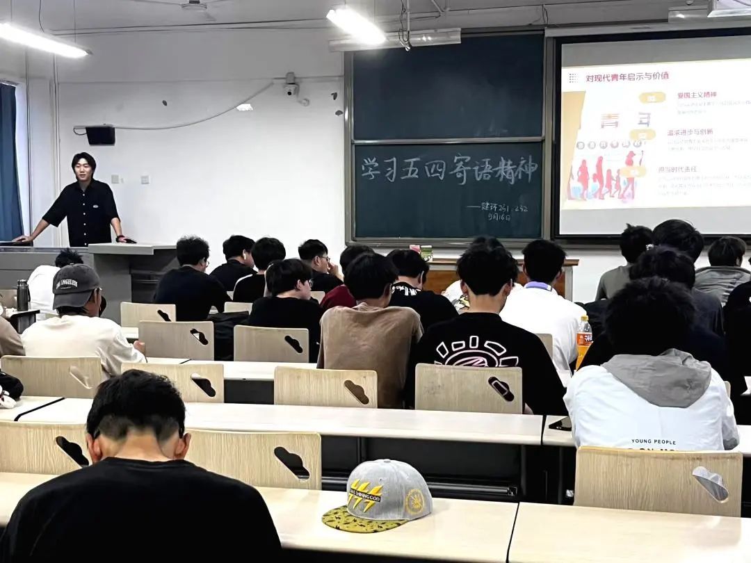 李轶鹏老师带领同学们深入学习了习近平总书记寄语新时代青年重要讲话,指明五四精神之于新时代青年的重要性。同时团课中李轶鹏老师带领同学们学习了习近平总书记的“青年观”,通过“点亮青春理想”、“激昂奋斗旋律”、“澎湃创新动力”、“淬炼斗争精神”四个重要部分,体悟到习近平总书记对于青年工作的重视,点明了习近平总书记对于新时代广大青年的具体要求。只有坚定不移听党话、跟党走、争做有理想、敢担当、能吃苦、肯奋斗的新时代好青年,为实现党的二十大所绘制的宏伟蓝图团结奋斗、建功立业。