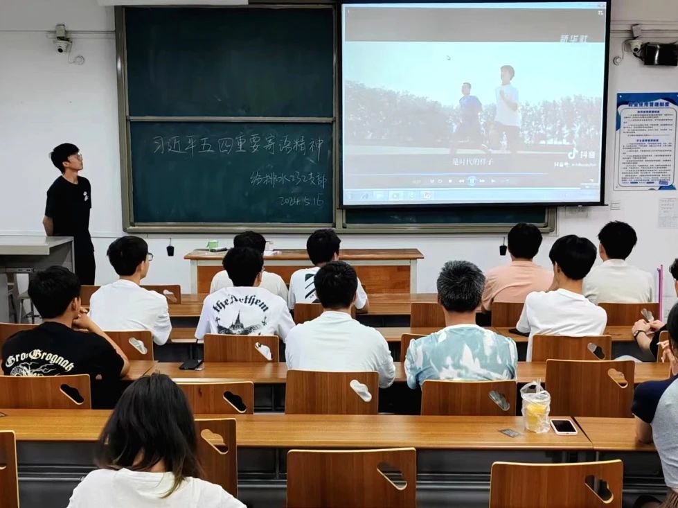 习近平总书记在新中国成立75周年、五四运动105周年之际,殷切寄语新时代青年。为深入学习习近平总书记五四重要寄语讲话精神,贯彻习近平总书记关于青年工作的重要思想,落实总书记就新时代青年的具体要求,伟德国际VICTOR1946团总支书记李轶鹏于5月14日晚在阎良校区报告厅进行团课讲评,各支部于5月16日晚开展团日活动。