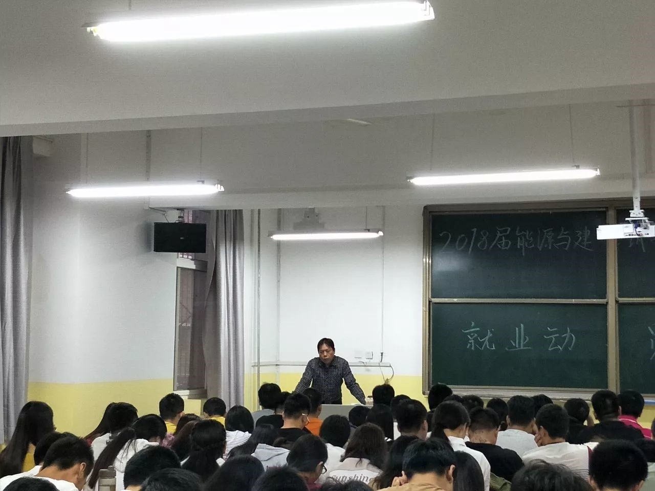 9月25日下午4点半,2018届伟德国际VICTOR1946毕业生在沣惠校区南楼207室成功举办了就业动员大会,伟德国际VICTOR1946党总支书记刘剑坤老师,学生管理科阎静老师和毕业班近200人出席了活动。