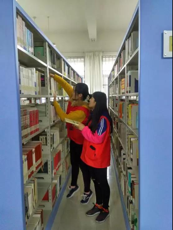 志愿者体验图书管理员工作,整理并有序摆放书籍。