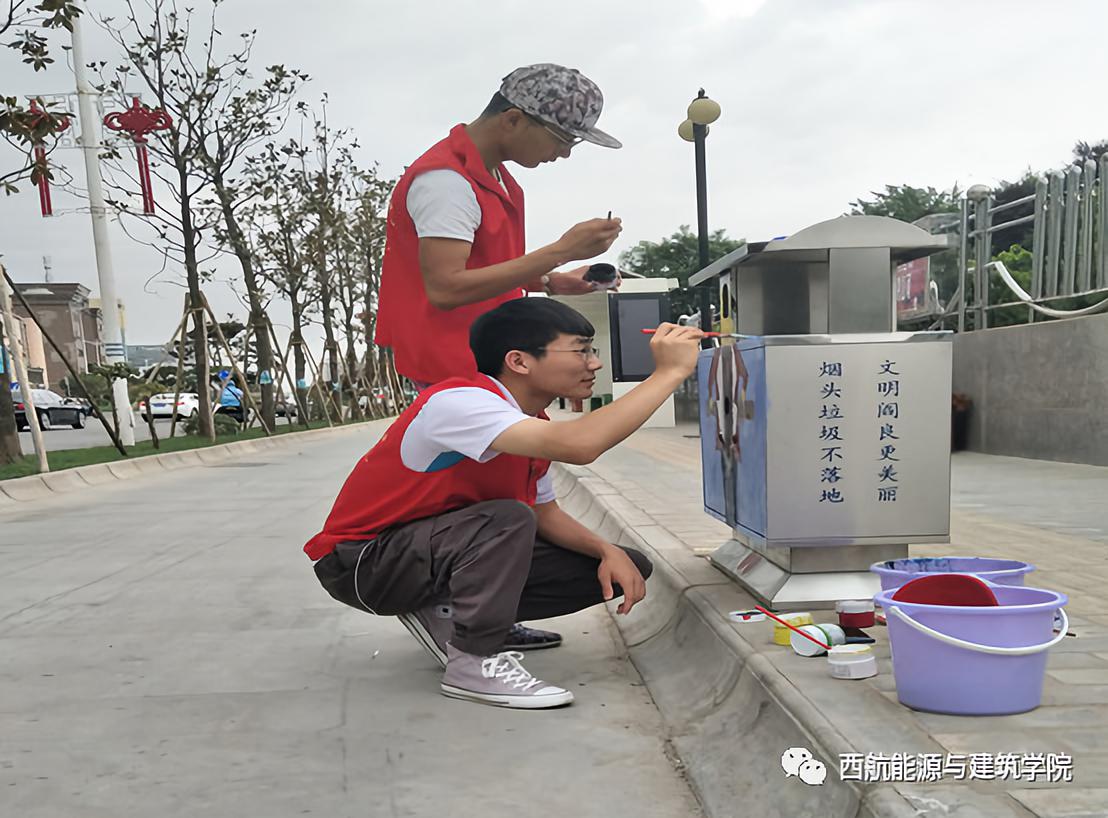 在六月到来之际,我院“青年志愿者服务队”与“团委社会实践部”于6月3日在阎良区凤凰广场联合举办“爱洒阎良,我是行动者——共建美丽航空城”画井盖志愿服务活动。