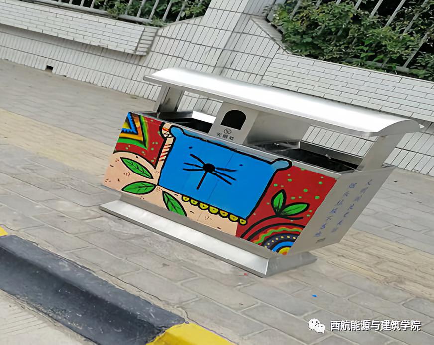 我院志愿者拿着画笔仔细认真的绘画出一幅幅美丽的图案,使阎良的部分街道井盖和垃圾桶变得更加美观。