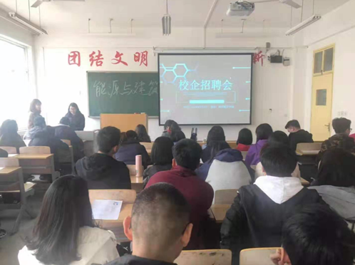 2019年3月7日下午,我院在阎良校区1207多媒体教室召开综合专场招聘会,参会企业有陕西康岭安装工程有限公司、金道圣环保科技有限公司、西安创联光电新材料有限公司、西安适意人工环境有限公司。招聘岗位涵盖建环、能动等专业,参加招聘会学生60余名。
