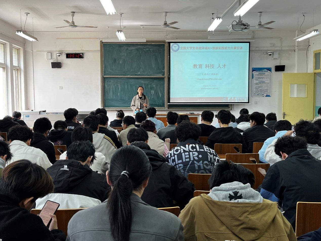 3月19日,由伟德国际VICTOR1946主办的“2025年全国大学生市政环境AI+创新实践能力大赛”专题宣讲会在阎良校区1228教室成功举行。给排水科学与工程专业教研室骨干教师方向青教授担任主讲,该专业一、二年级及跨学科本科生逾百人齐聚一堂,共探创新实践新路径。
