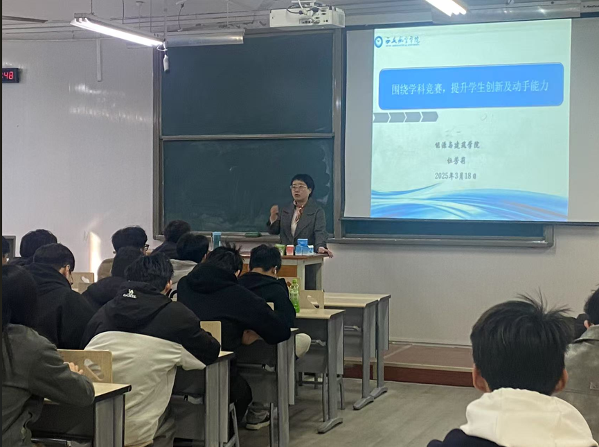 3月18日下午16:00建环专业负责人杜芳莉老师在阎教1220教室为同学们做了“围绕学科竞赛,提升学生创新及动手能力”的专题讲座。本次讲座从学科竞赛介绍、专业创新思维分析、创新能力提升策略、学科竞赛经验分享等方面进行了全面介绍。