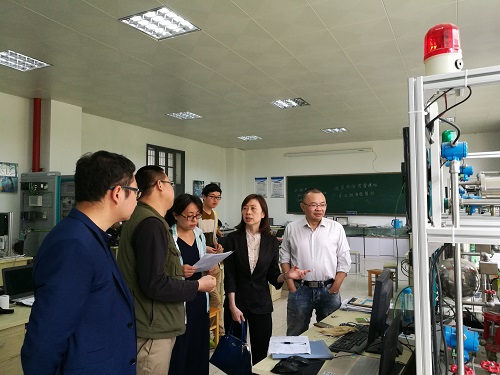 西安邮电大学自动化实验室的沈老师热情接待了我院调研人员,并就该实验室与西门子公司合作共建的锅炉房运行仿真自控实验台做了详细介绍和展示。该实验台既有完整的锅炉房系统模型,又有一套相对应的虚拟仿真系统来调节控制系统的运行,属于虚实结合的实验设备,故障率极低。另外,沈老师还介绍了他们在实验室开放、实验室管理、学科竞赛备赛等方面的经验和做法,为我院的实验室建设和管理工作拓宽了思路。
