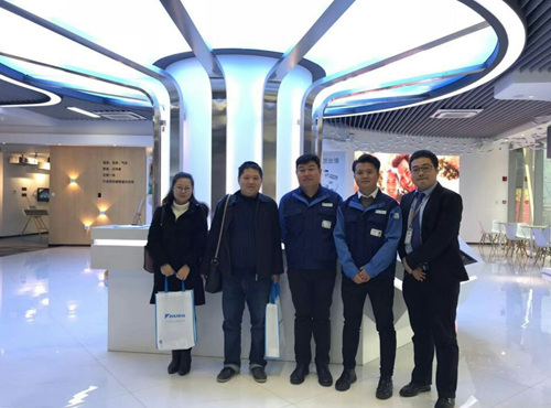 所长刘浩对我院领导一行来访交流深表欢迎,并介绍了公司的企业文化、业务特色、发展前景及人才需求,表达对我院毕业生专业水平和综合能力的认可,大金作为空调行业的领军企业,技术先进、产品口碑好,对于建环、能动专业的毕业生需求量很大。副院长吴奇介绍了我院的人才培养目标、专业特色和课程设置,强调了突出培养学生的应用能力。他表示,把企业的先进技术和产品融合到课堂教学中可以加深学生对专业知识的理解和认识、了解科技前沿,对于学业和就业都有积极作用。辅导员赵莉介绍了毕业生生源信息及安全管理保障措施。交流中,双方就人才培养、建立专业实践基地和毕业生就业等方面达成了初步合作意向。随后刘所长带领参观讲解企业最新科研成果空调展示设备及先进的温控调节系统。
