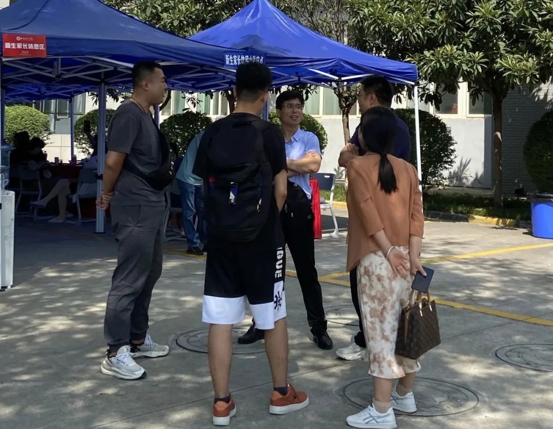 党总支副书记高振江,新生辅导员李轶鹏来到我院新生报到现场,和家长亲切交谈,并对学院温暖周到、如火如荼的迎新工作表示充分认可,要求充分发挥学院学科优势,为新生营造温馨、舒适、友爱的校园环境。