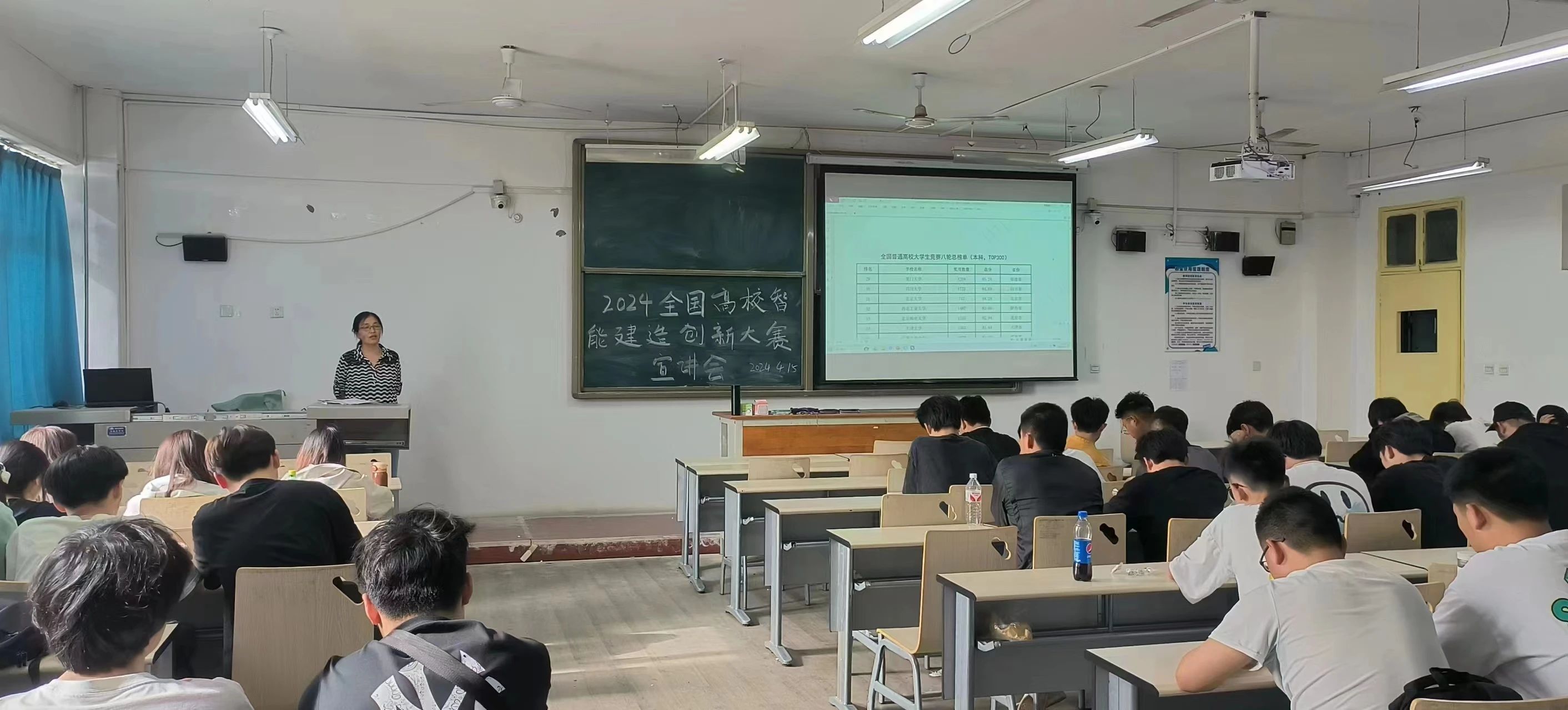 在《智能建造创新大赛》的讲座中,刘晓宁老师就最新全国智能建造创新大赛向同学们做出讲解。会议第一部分,刘老师向同学们详细介绍参赛事项、参赛情况以及参赛要求,以往届参赛获奖作品为例具体分析了竞赛方向。第二部分刘老师以表格形式向同学们展示全国普通高校大学生八轮总榜单。最后鼓励同学们积极参与,敢于尝试,有所突破。