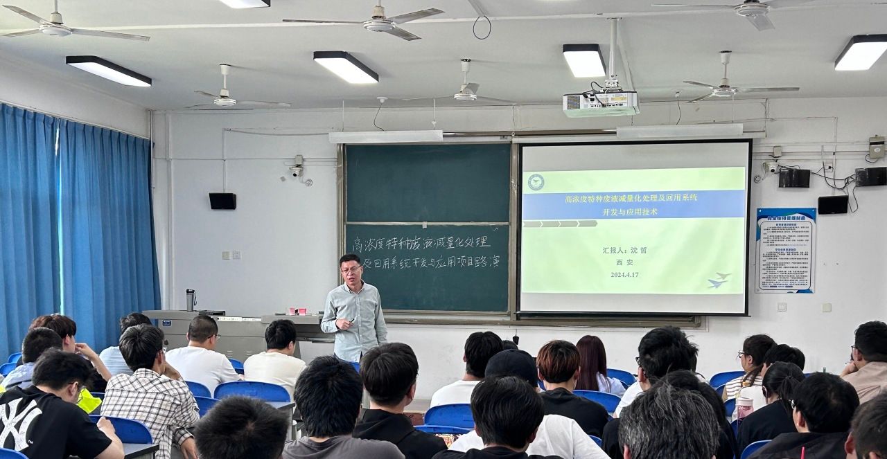 在《高浓度特种废液减量化处理及回用系统开发与应用》的讲座中,沈哲老师首先围绕高浓度特种废液的种类以及危害进行介绍,紧接着向同学们详细介绍了如何减量化处理高浓度特种废液的方式。他指出高浓度有机废液中还蕴含着大量的有机物并展示废液回用系统开发与应用项目路演。最后沈老师鼓励同学们勇于挑战自我,展现创新才华。