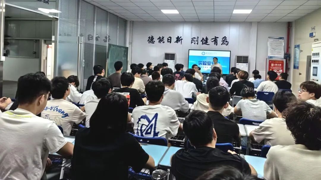 6月3日能源与动力工程专业的学生在3号实验楼晗差实验室在杨晓新老师的指导下开始能动认知实习。为保障实验室安全,提高学生对实验室安全的认知和意识,学生们首先在杨晓新老师的指导讲解下重点学习了实验室实验室安全注意事项,并进行了实验室安全培训。在杨晓新老师的讲解下,学生们充分了解了实验室安全注意事项,并提高了学生自身的安全意识。之后杨晓新老师为学生们讲述了能动专业方向与专业内容,使学生们对本专业相关知识有了一定的理解。