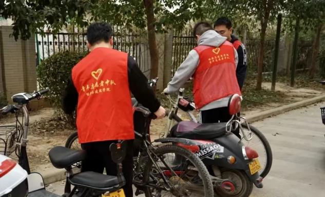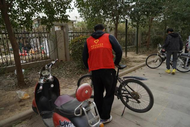 志愿者负责将宿舍楼前、科教楼门前、实验楼旁的车辆整理,使车辆摆放整齐。