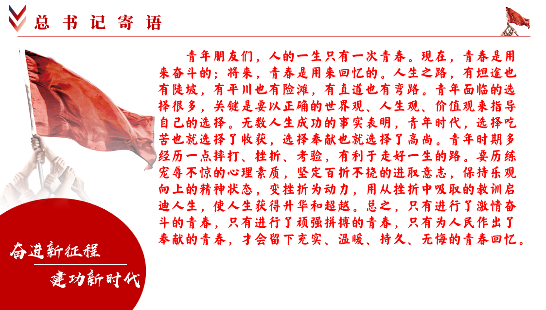 通过此次活动,同学们对总书记寄语理解透彻,同学们在交流中感受到青年在未来的工作中应负的责任是重大的,新的青年们要在党的引领与号召下赓续前行,以饱满的热情、扎实的本领、踏实的工作接过新时代五四精神的接力棒!