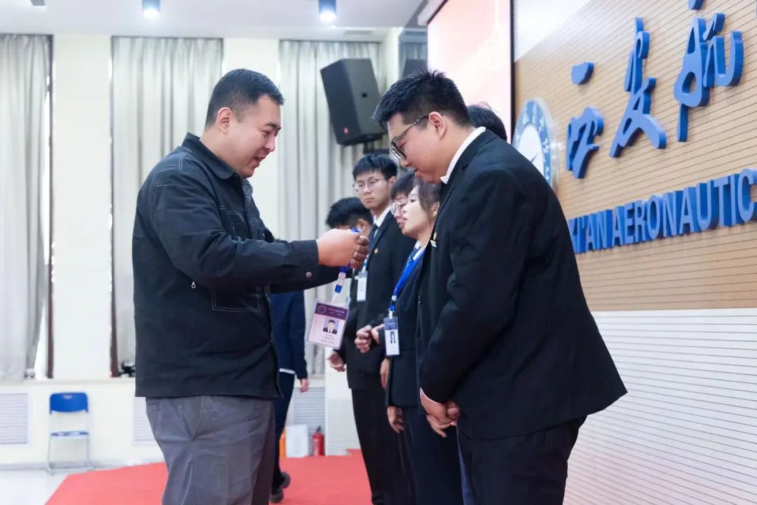 第九项,各部门负责人给各部门大一干事领发工牌并合影留念