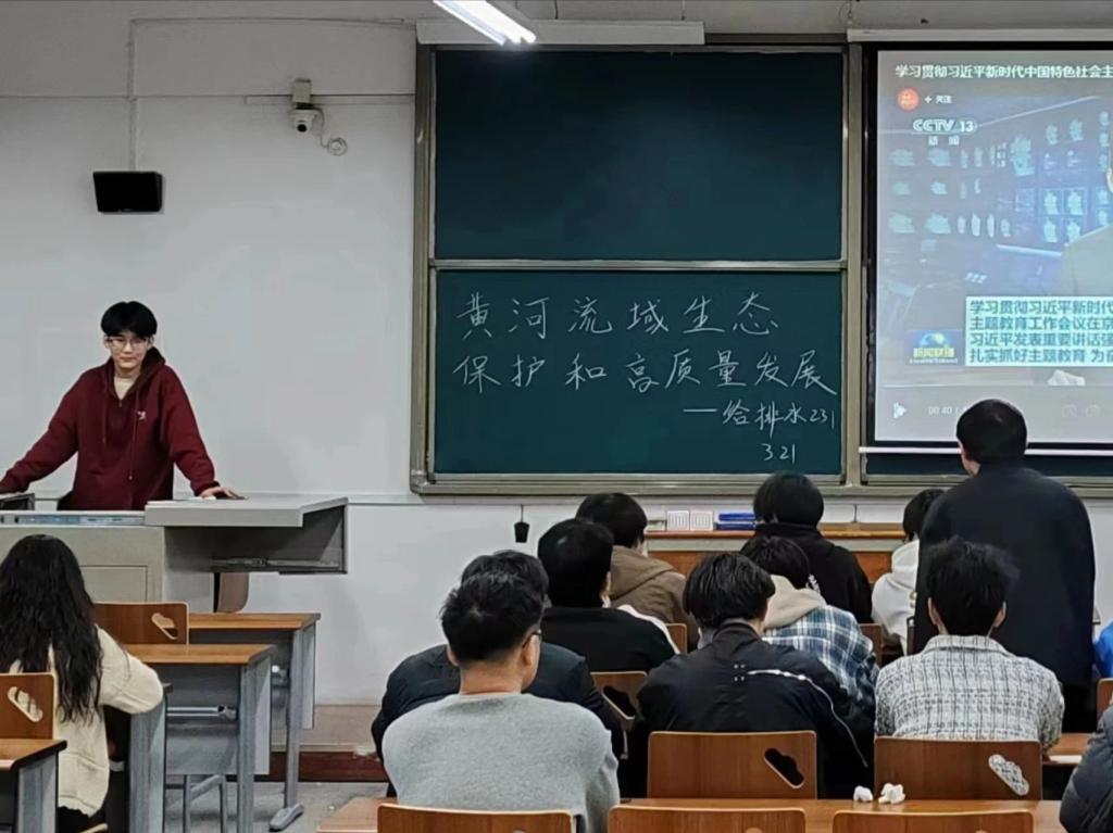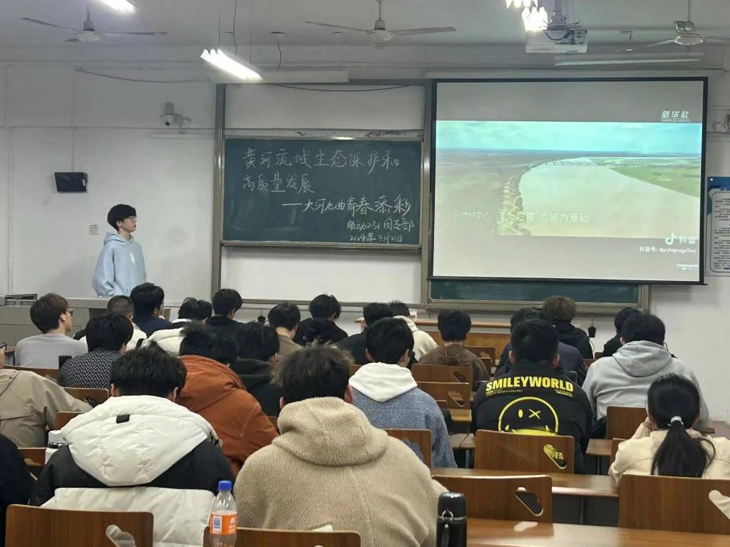 在本次活动中,各班团支书向同学们介绍了母亲河——黄河的概况和历史背景,通过制作的PPT和丰富的图片展示,组织同学们学习“黄河生态保护”相关知识以及黄河流域的过去与未来规划,同时通过观看视频等方式认真学习贯彻习近平总书记关于黄河流域生态保护和高质量发展的重要指示精神,了解了保护黄河的紧迫性,大力倡导护水、节水生态发展理念,提升青年水质保护意识。