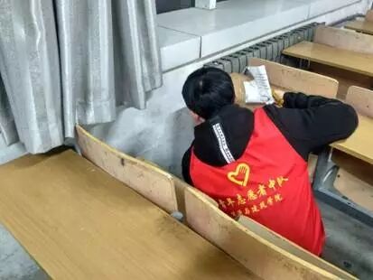 我院志愿者热情高涨,仔细、认真地打扫了阎教楼二楼教室卫生并清理教室垃圾。
