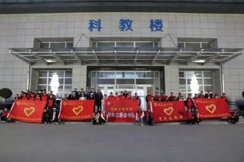 下午志愿服务:17:50,全校志愿者代表在阎科楼前集合打扫教学楼卫生。