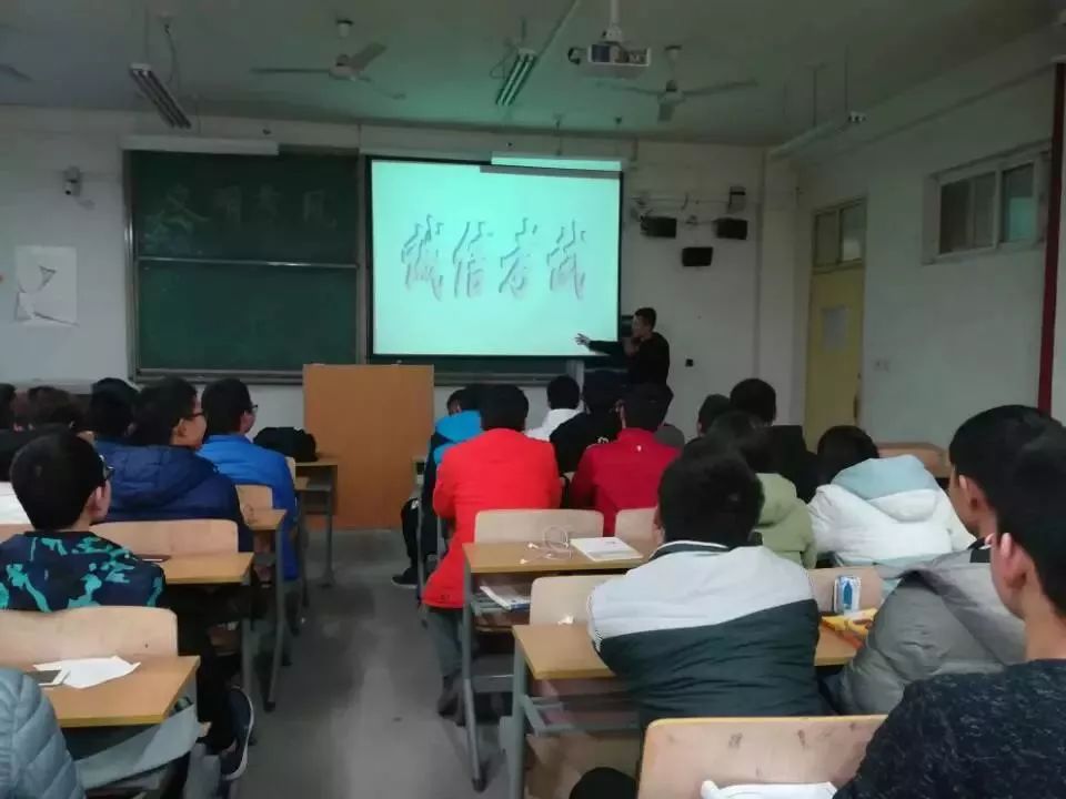活动目标:为加强我校的学风建设,严肃考风考纪,践行社会主义核心价值观,提高广大同学对考试作弊严重性的认识,杜绝考试作弊现象的发生,促进考风考纪深入学生的心,为广大学生营造一个公平的竞争环境。12月24日,工程管理2104班于晚自习室1234召开“诚信考试”主题班会,班会号召同学们积极认真备考、诚信考试。此次班会由班长舒崎峰带领全班认真详细地学习了《诚信考试承诺书》,让同学们熟知校纪校规,并在承诺书上签字确认。
