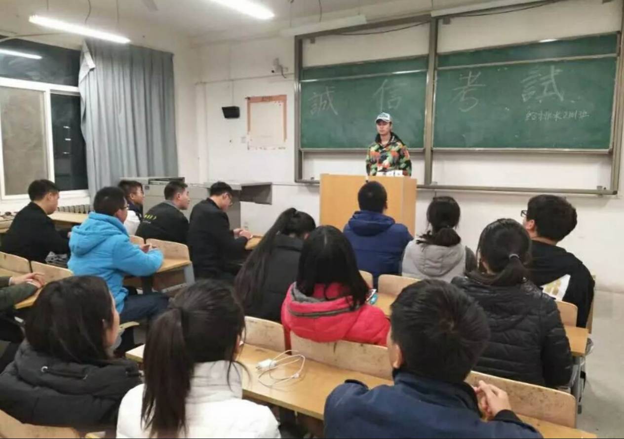 活动过程:班会由班长带领全班认真详细地学习《诚信考试承诺书》,向同学们讲解学校对于严肃考风考纪的各项政策以及对于考试安排程序、考试管理、补考重修等等各种问题,并结合以往我校发生的关于考试出现各种问题及处理办法告诫同学们要透明考试,诚信做人,最后全体学生在承诺书上签字承诺。
