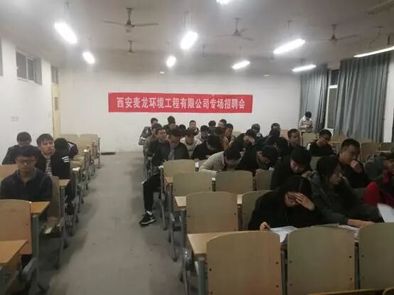 为了更好的解决大学生就业难题,缓解大学生就业压力,我院于2017年11月23日晚七点在阎教1234教室举行了西安麦龙环境工程有限公司的专场招聘会。出席本次招聘会的有我院学生管理科科长高振江老师,麦龙环境工程有限公司亢经理,我院部分大四毕业生参加了本次招聘会。