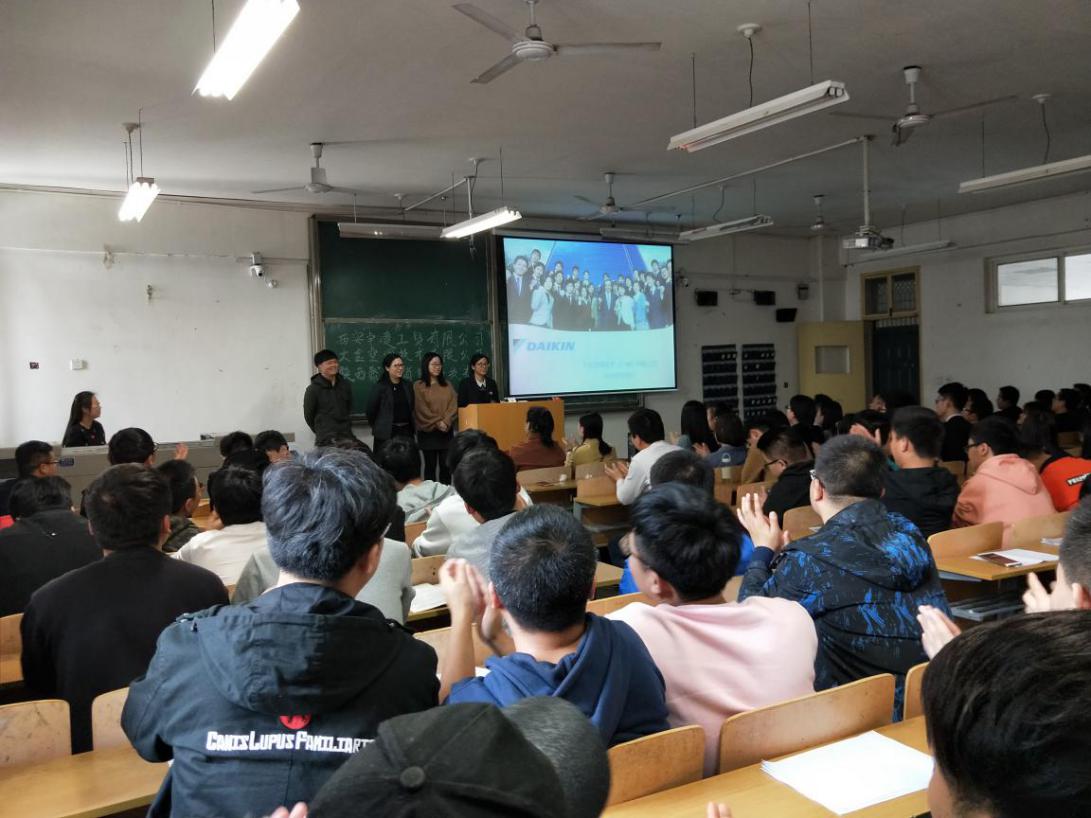 各家单位的人事经理依次进行PPT宣讲,介绍了所在公司的企业文化,招聘专业需求、岗位技能要求等,其中大金空调技术有限公司和陕西聚慧消防科技有限公司还派出我校往届毕业生作为优秀员工代表前来给学弟学妹们分享工作经历和就业经验。学长学姐在公司的成长经历激发同学们对工作的向往,增强了自信。