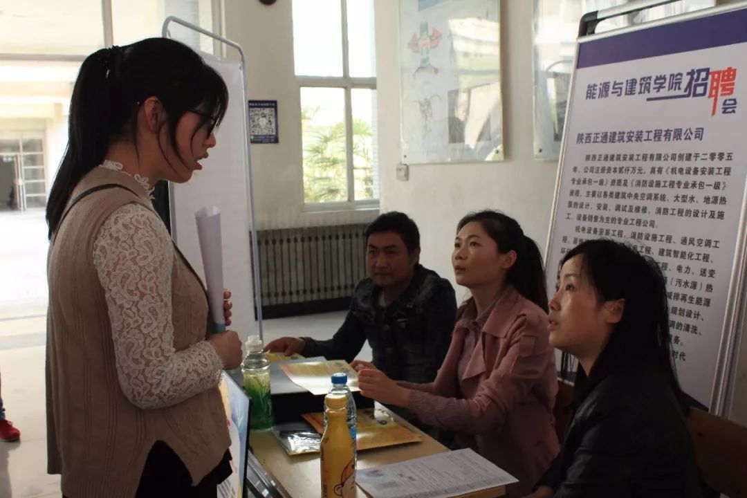 3月29日14:00,我院专场招聘会于阎良校区阶梯教室大厅成功举行。招聘会吸引了陕西正通建筑安装工程有限公司、中恒尚美装饰工程有限安公司等13家公司企业前来参加我院的专场招聘会,涉及建筑、制冷、设备安装、环保等多个领域,提供了近百个就业岗位。